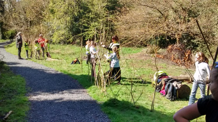 In the past, we have been joined by children from the Meadows Primary School, who used the site as a base for some of their forest school sessions – The Glade with its arrangement of log seats and the willow screen planted with some of the children is their base area. We have bought bird and bat boxes from the My Options skills and enterprise hub in Horsehay, and Mike Slocombe helped Meadows school children make a whole lot more.