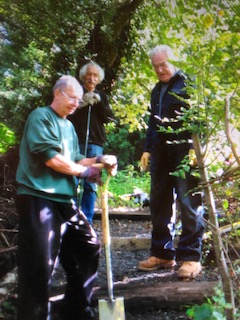 Pete, holding the spade, with Fen (centre) and Ken, improving the access down their path to the canal.