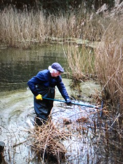 Fen was always very active and keen to get stuck in to tasks – luckily not literally stuck when he donned the waders to help clear reeds from the round pool!