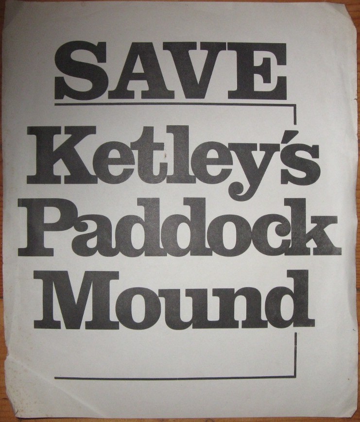 In 1967, Fen Tyler, a Wellington RDC councillor, raised the matter of the future of the Paddock Mound site with the District Council and also with the Telford Development Corporation, by now the prime mover in the area’s future. He received a sympathetic hearing in both cases but it was an unavoidable fact that K.E. Millard retained outline planning permission for the site. By the 1970’s a ‘head of steam’ was growing in the locality with many residents opposed to further development and the Ketley Paddock Mound Preservation Group was formed.