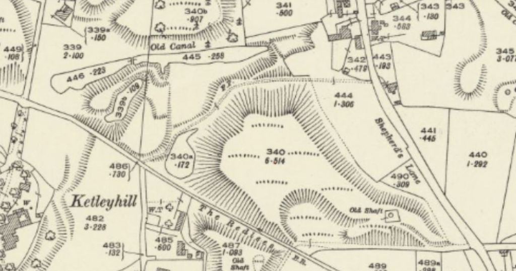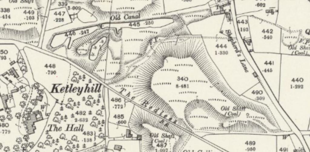 These two maps – taken from the Ordnance Survey sheet XXVI.14 Shropshire, courtesy of the National Library of Scotland website, were surveyed in 1901 and 1925. They show slight changes to the shape of the canal remnant, but most noticeably, the top pool was not there in 1901, but was fully formed by 1925. There is a slight spring / seepage of water from below the slope – where waste soil from the pits had gradually been dumped over the previous 100 years and more. This seems to have been trapped by the raised footpath, which was created before the 1st edition OS in 1880, from Red Lees to Shepherds Lane. These maps have been added to the site as a possible answer to the questions and discussion posed on facebook by Norman Pagett – any further thoughts, comments or research would be really welcome!