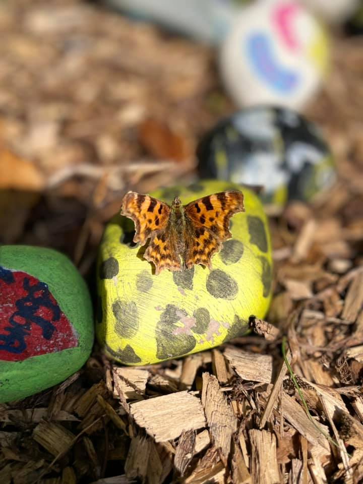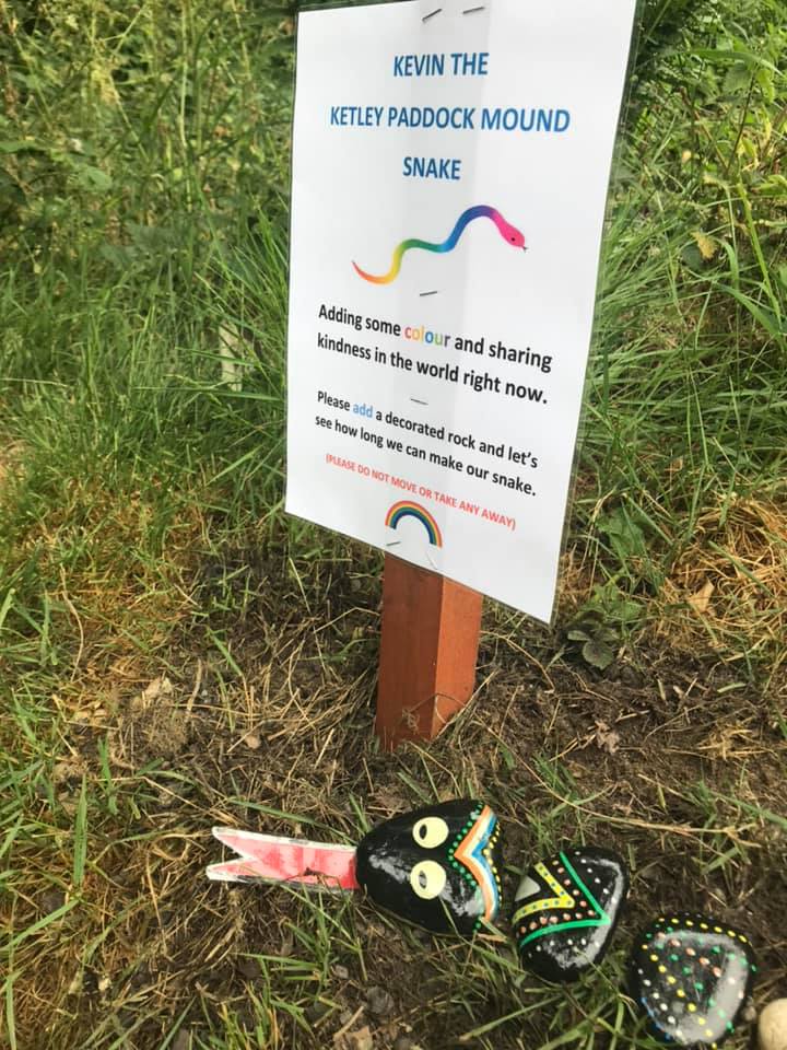 Stacy Louise has contributed masses of photos, but more importantly the content and text describing how important Paddock Mound has been during Covid lockdowns. She has created many beautifully painted stones with her daughter, and the sctivities related to them which have involved many people in the community. Kevin the snake is the centre of this, with other stones and occasionally teddybears etc for chikdren to find. Paddock Mound has been the site where she has taken part in the great butterfly count and birdwatch.