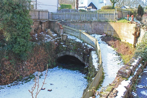 The canal used to run through a tunnel under Shepherds Lane – the tunnel is hidden under the bank beyond the three large sycamore trees. The picture above is of the other end of the tunnel, where it emerges into a private garden.